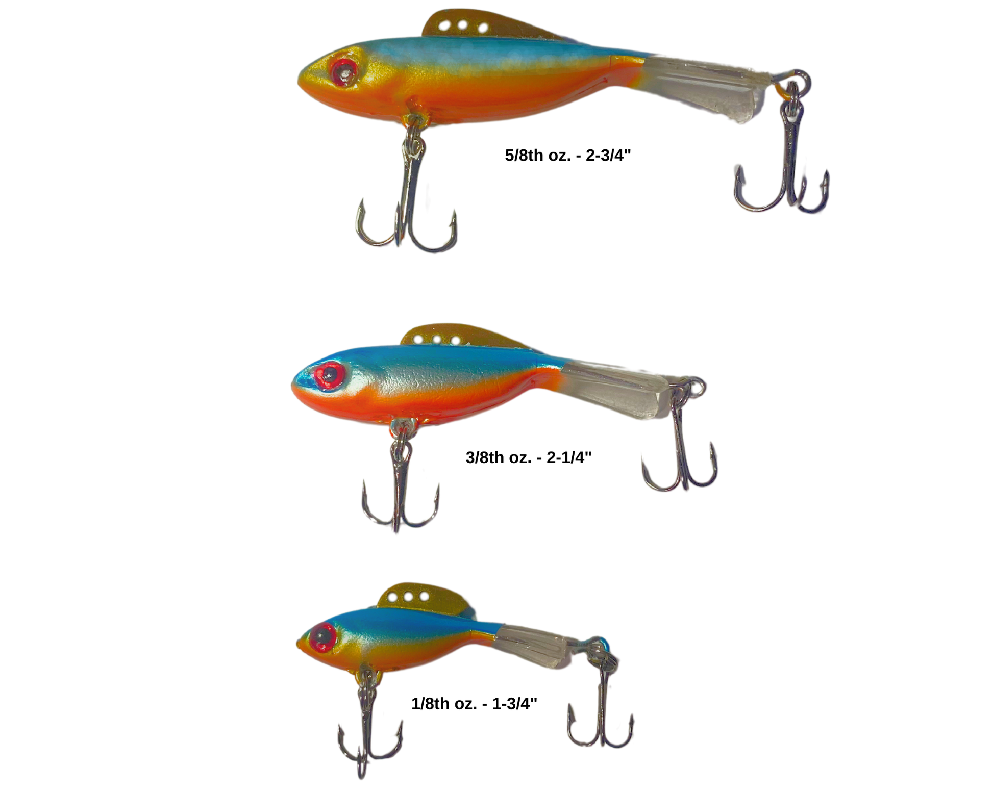 5/8th oz - 2-3/4" long, equipped with #8 hooks